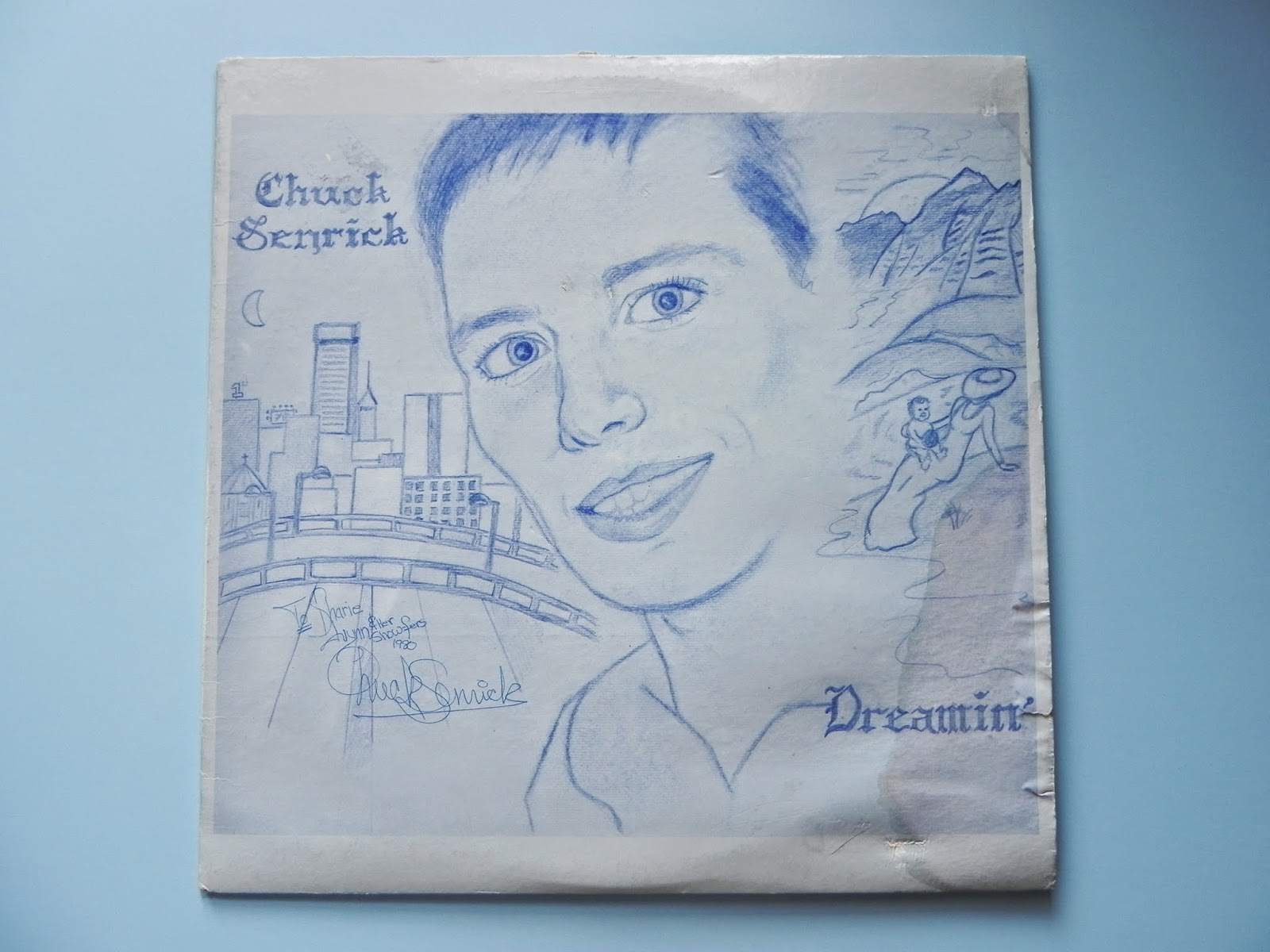 Here's one I just had to share. Hipped by my good friend Mark, I was told to expect a supper club organ player that grapples with something much larger than his square acre of Fettucine Alfredo over the course of an album's worth of original songs. And it's true, as Senrick's effortlessly simple and often repetitive chord changes stare you in the eye immediately across an empty room, a mannequin framework of drum machine pitter patter coercing his riffs and croons forward, the elegance of his voice blanketing wide eyes and a child-like heart in crushed velvet, satin-like. A jazz man. There's a lot of panache on display across this record, and I would argue that every song hits in one way or another. Senrick has the ability of a great songwriter, to push you to a kind of elemental catharsis in a bridge and hold you there trapped in an amber glow over the course of the next verse. He builds craft simply into each song, quietly, so that his subtle genius creeps up on you and it's totally fulfilling. He has a joyful soul. The mood is not explicitly melancholy, or wistful, but does occupy a kind of cartoon-like jazzy downs. It's a rendering, not unlike an imagined world. It's this latter fact that pushes the record that much further into greatness for me, as he's clearly a man at home in his imagination, and there lies the freedom that we all want to feel in music. He comes from a familiar place, but he leaves you with the delight in something new. The record morphs and mingles over the course of it's two sides into a wonderful micro-climate between jazz, soul, and lounge music. Lyrically the concerns are simple, often universal, and times verge on the philosophic. When so many people linger most exclusively in affairs of the heart it's nice to hear a grown man musing about what makes kids different from grown ups, or how he feels about his lost dog. It's not to say that "Dreamin'" does not contain love songs, but they're often tempered and have a self-assured maturity that I'm assuming came from a married man (see "Wedding Trilogy"). Across the disc his vantage remains oddly pure and graceful in a way I don't always associate with the period, as on "Downtown" he spins with clarity how meaningless the rat race appears if you actually stop and observe things. These concerns are never directives though, as he works like a painter, and the blended color is his own labyrinth for simple truths. Take his ode to a friend who succumbed to drugs, "Drop a Dime," which blends metaphors rapidly creating a portrait of the addict as a part of a universal concern, "he's a little bit you, a little bit of me," yet pushing the song predominantly through a highly repetitive chorus that seems to illustratively offer that same man's base reality ("drop a dime, drop a dime"). The juxtaposition allows you to enter his world. It's this kind of enchanting subtlety that makes the record, and is not altogether what one may have gathered from drinking in the soft blue cover with that hand drawn mug boomeranging out of a suburban abyss. Or maybe it is that simple: music for a late afternoon, perhaps a bit wet with rain, when one might plunk down in a bean bag chair, with one light on and eat a graham cracker. Haha. I mean while you listen to the record obviously! A time and place to relax, and think about the world. So c'mon Duke, check it out!